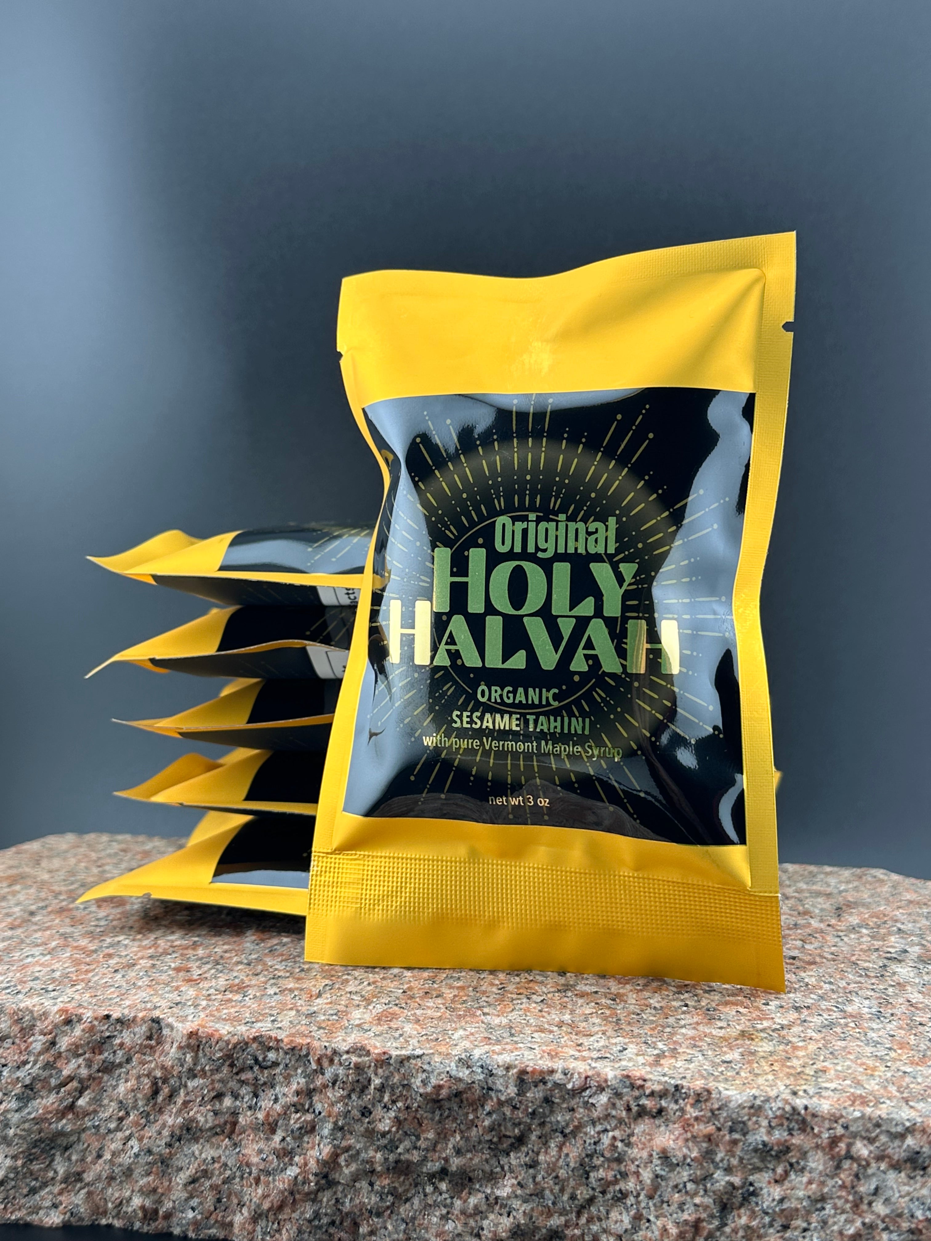 Holy Halvah is a super premium, organic, small batch, handmade halvah, sweetened with Vermont maple syrup. Holy Halvah magic is made here in Vermont, using locally sourced, certified organic maple syrup. We are devoted to clean, additive free food for all, and never use emulsifiers, stabilizers, or preservatives. Four real food ingredients give our halvah its dense, moist, melt in your mouth texture and a balanced sweet, salty, and nutty flavor. It's free of grains, refined sugar, and is even vegan. Holy Halvah is a wholesome indulgence accessible to everyone.